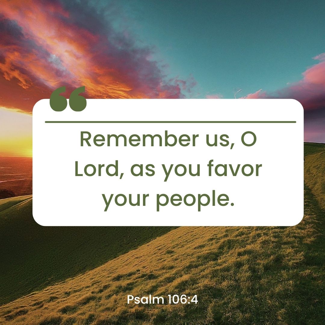 Loving God, in Your boundless mercy, remember us as You favor Your people, guiding us through trials and triumphs with Your steadfast love. Amen.